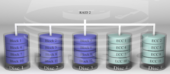 RAID-2 отказоустойчивый. RAID 2 использует коды исправления ошибок Хемминга (Hamming Code ECC). Коды позволяют